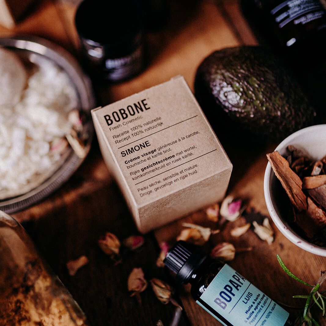Pour les peaux sèches et sensibles, Bobone vous propose Simone. Une crème à la carotte, bourache et beurre de karité.