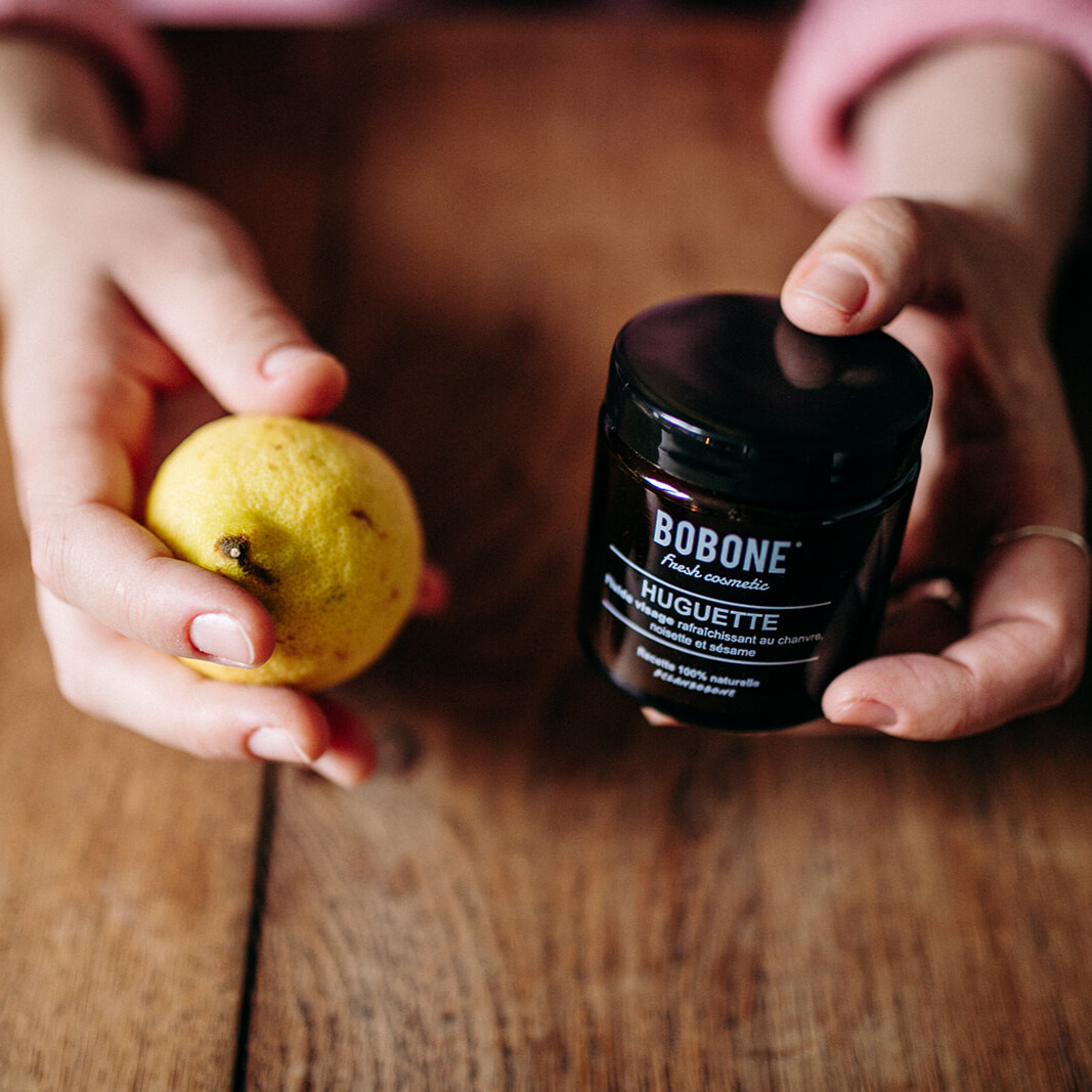 Pour les peaux mixtes à grasses ou pour les personnes voulant une crème plus légère, Bobone conseille le fluide Huguette qui s’applique aussi bien sur le visage que sur le corps. Une crème au chanvre, à la noisette et au sésame pour apporter douceur et élasticité à votre peau.