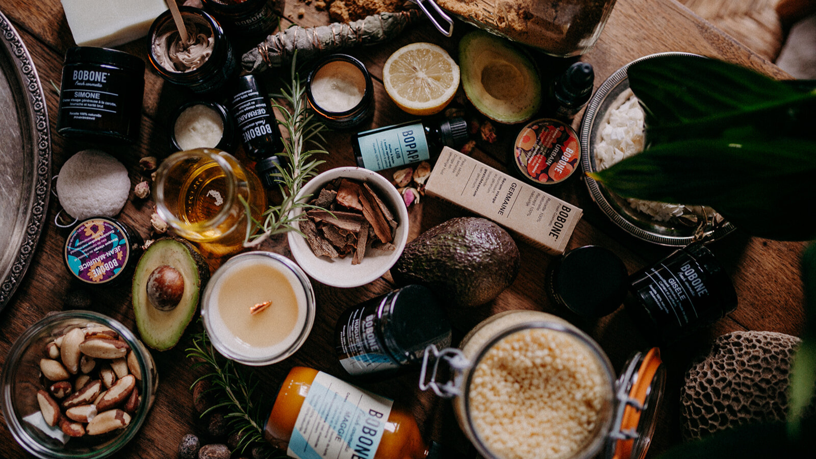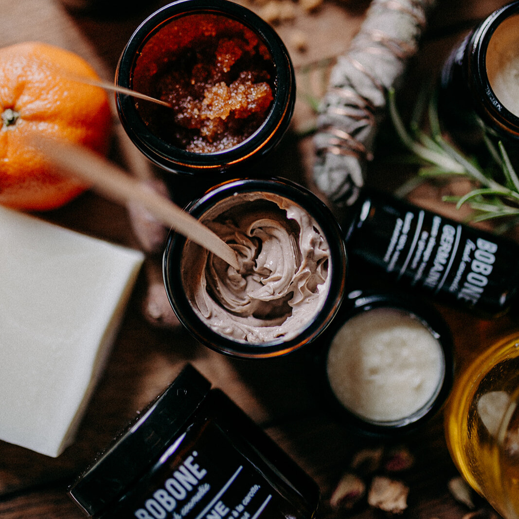 Chez Bobone, vous pouvez hydrater votre peau de manière efficace tout en évitant les produits agressifs. Nous travaillons avec des ingrédients 100% naturels, pour la plupart certifiés bio et/ou bruts et plus ou moins un quart venant d'artisans locaux. Nos matières premières sont des huiles et des beurres végétaux, des sucres, sels, cires d'abeilles (ruches locales) et plantes de notre jardin. Nos listes d'ingrédients sont simples à comprendre et notre savoir-faire fidèle aux gestes d'autrefois.